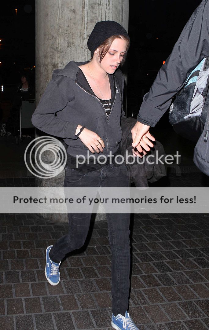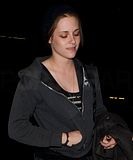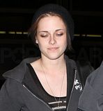 Kristen Stewart hides her hair inside a black beanie as she heads to her flight at LAX airport in Los Angeles on early Friday morning (May 28).